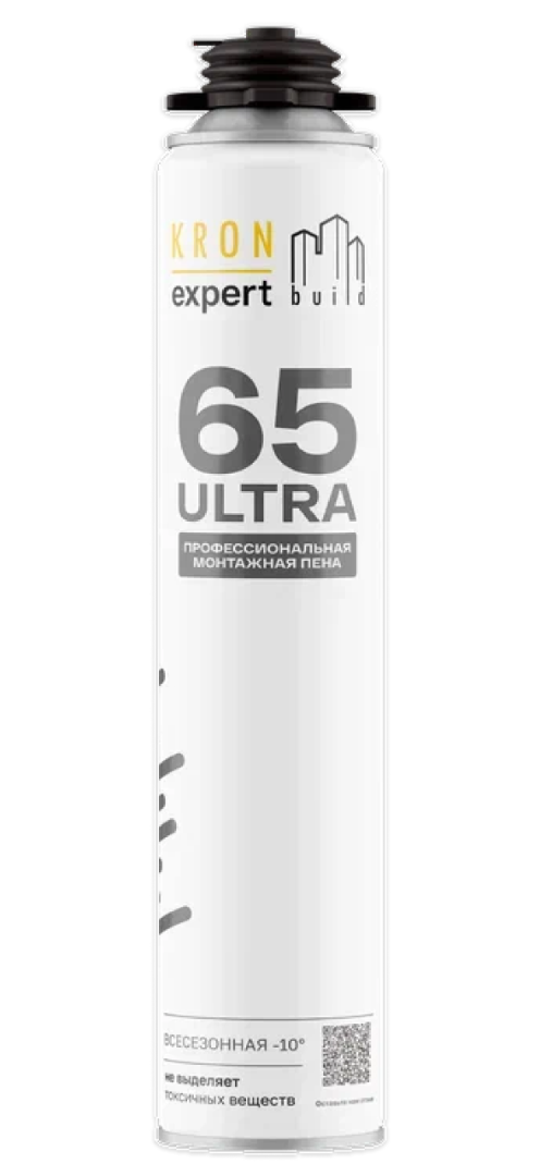 Профессиональная монтажная пена KRONbuild всесезонная 65 с хорошей механической прочностью. Также пена обладает отличной адгезией к большинству строительных материалов.