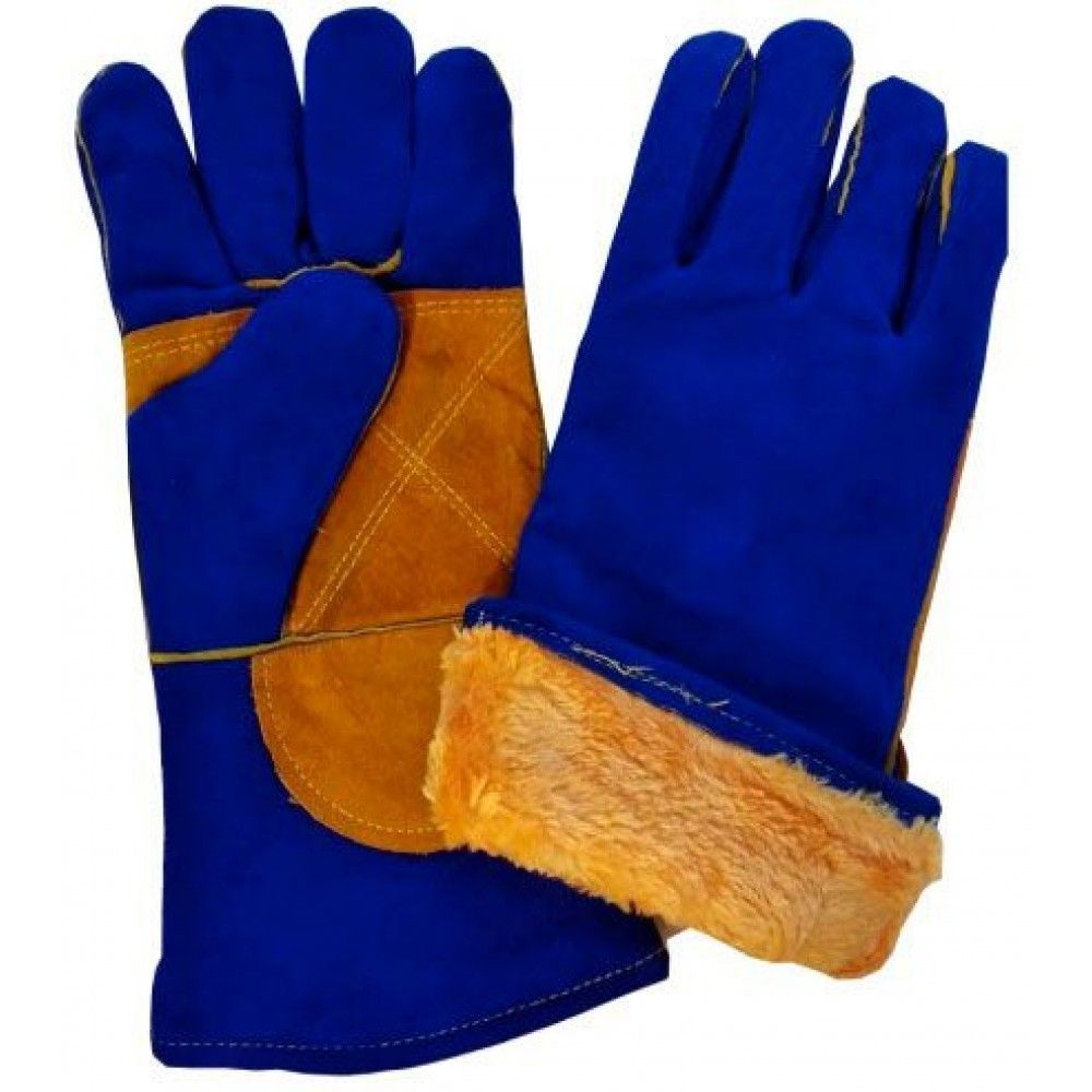 Краги спилковые с усилением синие утепленные предназначены для эффективной защиты рук от термических и механических воздействий при проведении сварочных работ. Краги утеплены мехом мутон рыжего цвета, который надежно защищает руки от низких температур.