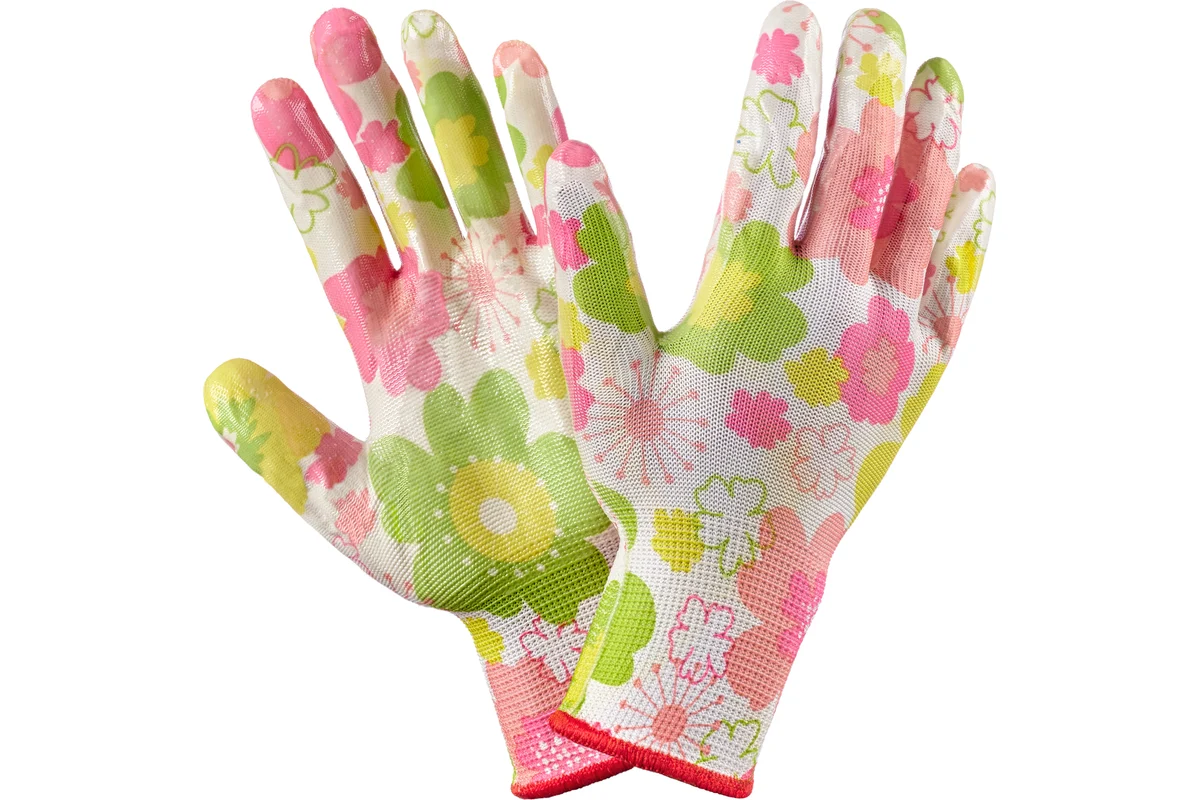 Перчатки нейлоновые с ПУ покрытием (цветочек)